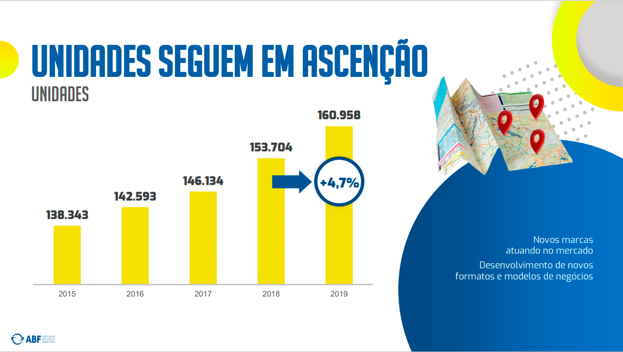 Os relatórios ainda mostram que foram mais de 7 mil unidades abertas em um ano, exatamente porque a FRANQUIA é uma forma mais segura de iniciar o negócio próprio.
